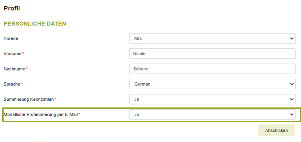 In der E-Mail selbst wird der Nutzer bereits darauf hingewiesen, wo er die E-Mails abstellen kann, wenn er dies möchte. Die Einstellung, ob der Nutzer die Prüferinnerung erhalten soll oder nicht, kann somit vom Nutzer selbst direkt in dessen Profil vollzogen werden.