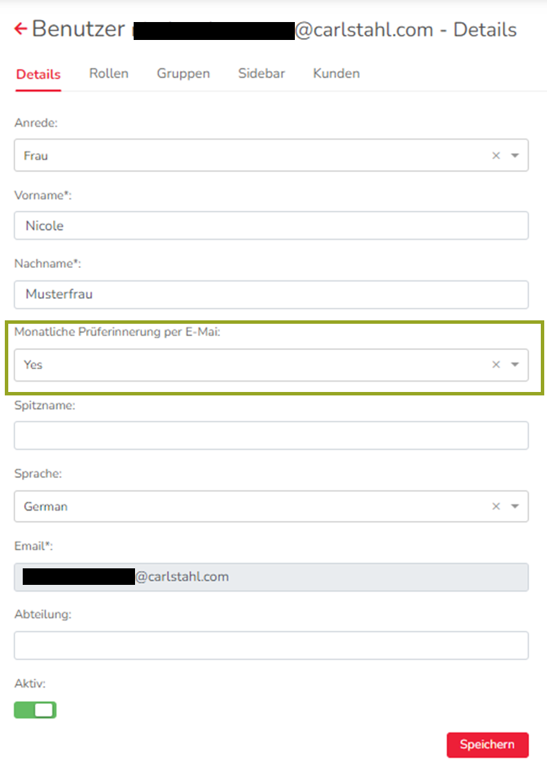 Aber auch im Backend kann die E-Mail Benachrichtigung von einem Nutzer mit dem Recht Usermanagement abgestellt werden.