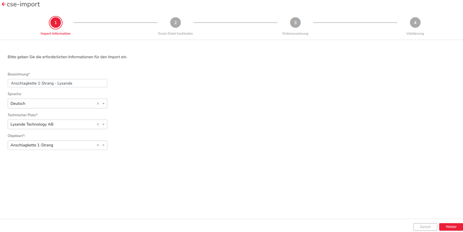 Bitte achten Sie auf die Hinweise in der Legende. Vor allem das Datum muss im richtigen Format importiert werden. Testen Sie gerne vorab einen Test-Import mit lediglich 3 Equipments.