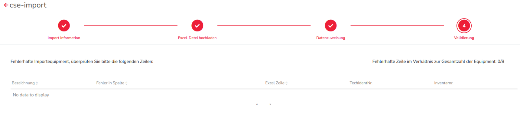 Wenn keine Fehlerhaften Importe gemacht wurden, dann wird die erste Zahl 0 und die unten stehende Liste leer angezeigt.
