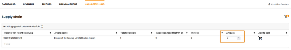 Der Nutzer benötigt die Berechtigungsgruppe "Nachbestellung" (siehe Nutzer verwalten, Nutzereinstellungen )