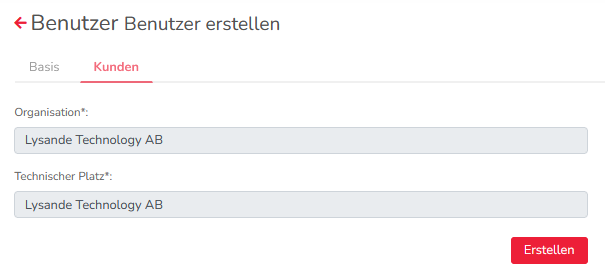 Sobald alle Pflichtfelder ausgefüllt sind, bestätigen Sie Ihre Eingaben mit dem Feld "Nächste(s)". Es folgt ein weiteres Fenster, in dem Sie die Organisation und den Technischen Platz des Nutzers zuordnen. Die Organisation ist dabei vorausgefüllt mit der eigenen Organisation. Es sind nur die Organisationen auswählbar, die man selbst besitzt.